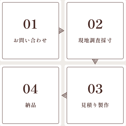 「オーダーメイド家具ってどうやって頼むの?」という方もご安心ください。ヒアリングから納品まで、丁寧に対応いたします。お問い合わせ後、まずは現地で寸法を取らせていただき、お見積りをしてから製作に入ります。