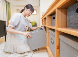 収納力を補う小ぶりなラックや、生活感をやさしく隠す目隠し棚なども人気。壁に傷をつけず、使い終わったら引越し先にも持っていける——そのような「ちょうどいい」工夫を詰め込んでおります。