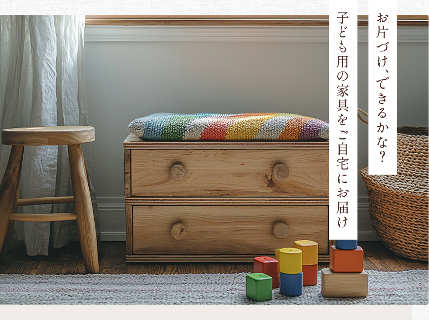おもちゃ箱や絵本棚など、お子さまもご家族の方も使いやすいキッズ家具をご提案。
