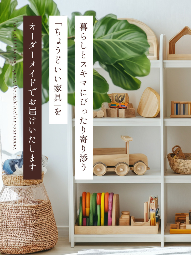 スキマにフィットする棚など、オーダーメイドだから叶う家具をお届け。